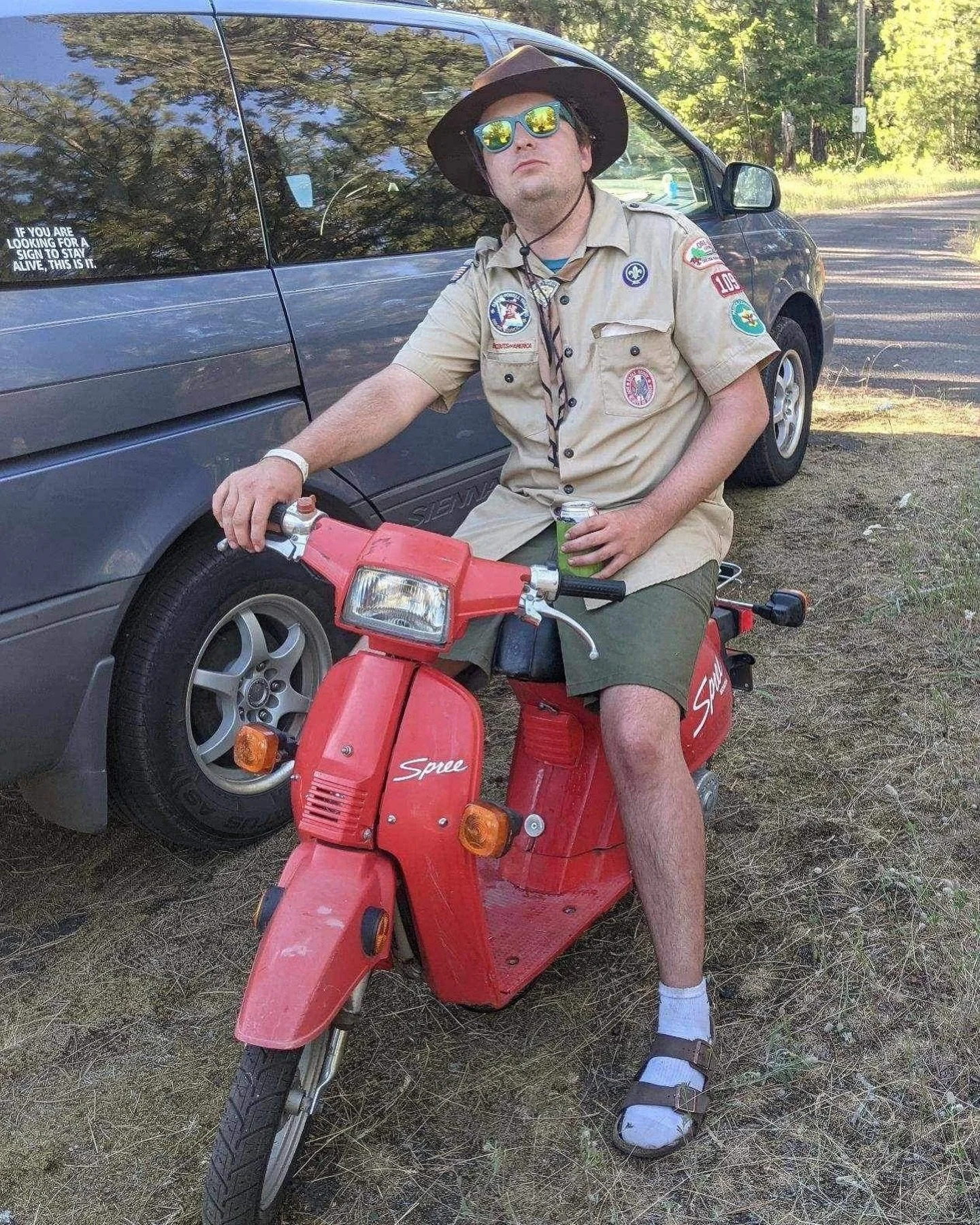 View fullsize Link in bio. No raffle. No fundraiser. No trophies. Just riding with folks around town and ending at a classic backyard hangout. #hootenany #twopercentscooters #spokanewashington #rideoutormissout